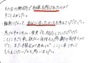 「その日の施術で効果を感じられたのがすごくよかったです。